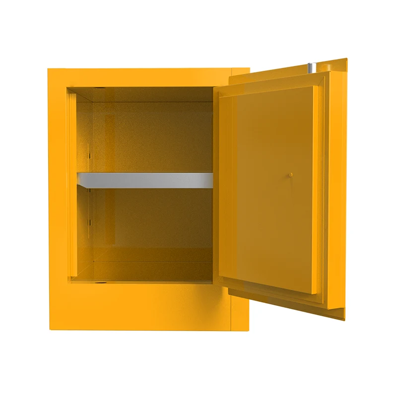 Назва продукту: шафа для зберігання легкозаймистих речовин Модель продукту: GS004 Зовнішні розміри: В560×Ш430×Г430 мм Внутрішні розміри: В460×Ш350×Г330 мм Розміри полиці: Ш348×Г330×В25 мм Об'єм: 4/15 (галони/літри) Вага: 25 кг Спосіб відкривання дверей: ручний/автоматичний Полиці: одна регульована полиця Тип дверей: Однодверні Блокуючий пристрій: Подвійні замки Колір: жовтий (епоксидна смола спрей - пофарбована) Примітки: Відповідно до пляшок з реагентами 500 мл можна розмістити 2 полиці, по 9 пляшок на кожній полиці |