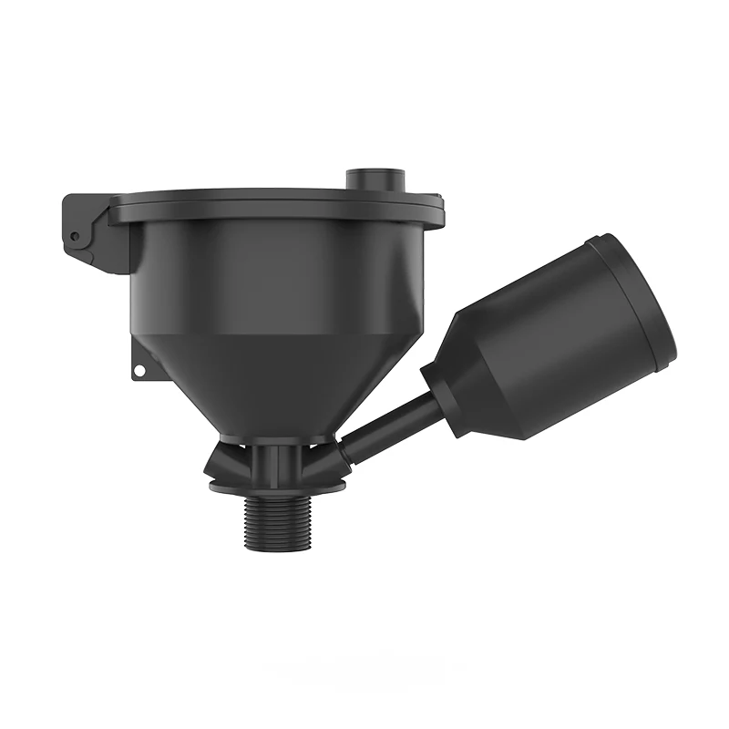 Внутрішній діаметр лійки становить 130 мм, а зовнішній – 158 мм. Він приймає дизайн герметичної верхньої кришки. Сировина формується під тиском з імпортних антистатичних матеріалів, оснащена герметизуючою кришкою та воронковою конструкцією фільтра, що захищає від бризок. За бажанням під лійкою можна встановити клапан, щоб забезпечити безпеку герметичної стічної рідини. Верхня кришка типу противаги. Коли внутрішній тиск досягне 100 Па, верхня кришка автоматично відкриється для випуску вихлопних газів, щоб запобігти вибуху та самозайманню. Коли тиск менше 50 Па, кришка автоматично закриється.